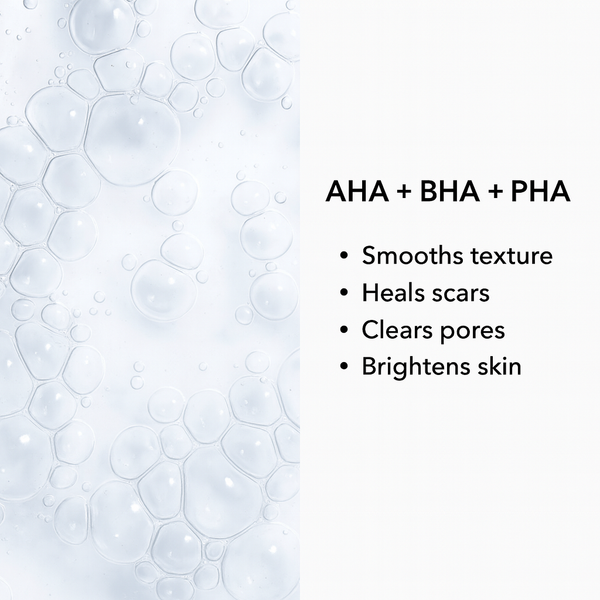 A: This next-gen serum uses exosome-coated spicules for deep renewal. Each spicule delivers exosomes loaded with peptides, amino acids, glutathione, and vitamins. AHA, BHA, and PHA smooth and brighten, while niacinamide boosts barrier function, and panthenol soothes and hydrates.The result? Fresh, healthy glow that starts from within.
